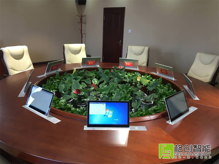 | 集團公司主要職能為城市建設資金籌集、城鄉(xiāng)基礎設施建設、市政園林養(yǎng)護及應急處置等。為了更好服務城市資源運營管理,提高會議效率、輔助領導決策,經(jīng)過對國內(nèi)多個無紙化終端設備廠家的嚴格測試和對比,最終選擇了格創(chuàng)智能自動升降系列無紙化會議系統(tǒng)解決方案,使得整個會議室整體風格更整潔、美觀。 |