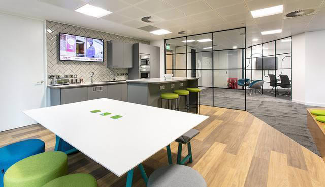 | Rethink Group,是英國一家提供招聘和人才管理服務(wù)的全球性公司,成立于2005年。本案是其位于英國伯明翰的新辦公室設(shè)計及辦公家具應用案例,由工作場所設(shè)計公司Interaction團隊打造。設(shè)計以品牌色彩和靈活自由的曲線勾勒的圖形背景墻,為整個空間帶來統(tǒng)一的視覺與靈動的氣息。 |