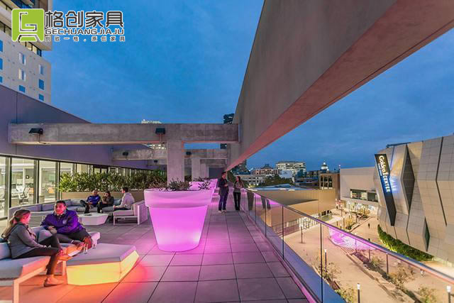設(shè)計(jì)團(tuán)隊(duì)與國(guó)王隊(duì)的項(xiàng)目團(tuán)隊(duì)緊密合作,在室內(nèi)創(chuàng)建一個(gè)360度的鳥瞰動(dòng)線,站在配有水吧的大廳陽(yáng)臺(tái)上,可以看到帶有泳池的酒店套房,以及下方街道上的露天廣場(chǎng)。